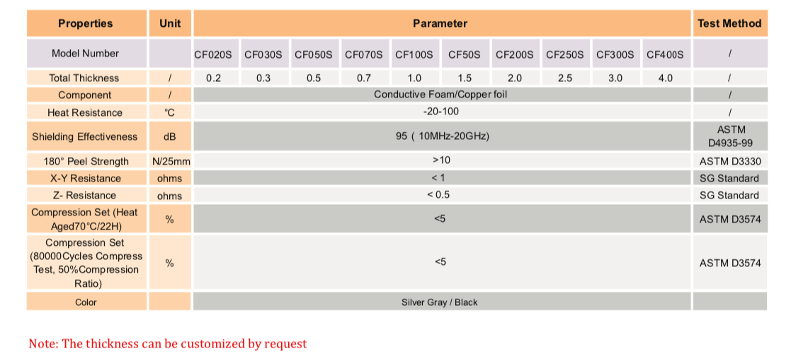 TM CFS系列是一種導電泡棉,其結構由軟金屬鍍開孔聚氨酯泡棉和帶有雙面導電壓敏丙烯酸粘合劑的銅箔組成。這種高度可壓縮的結構專門設計用于通過X、Y和Z軸提供EMI屏蔽和接地。CFS系列基于軟泡棉結構,在寬間隙距離內具有可靠的電氣性能。" />